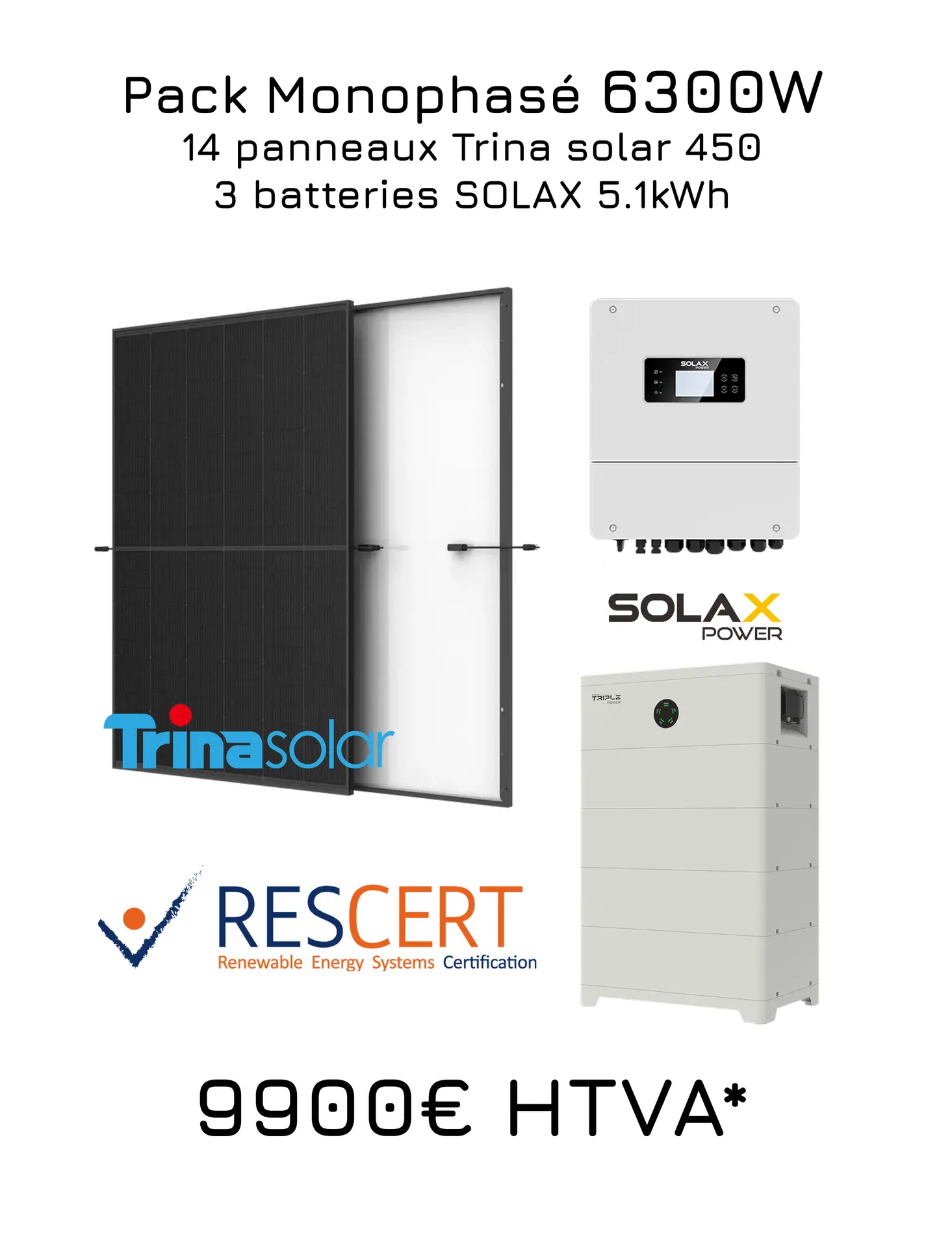 Nos packs sont composés de matériel Trinasolar pour les panneaux et Huawei ou Solax pour les batteries/onduleurs. Nous travaillons avec d'autres marques comme Growatt à la demande.